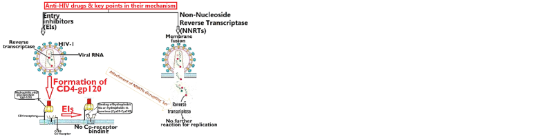 The effect of HIV-1 on a human’s immune system cannot be ignored. This is the virus that reduces the power of the immune system to fight against any disease. Of course, many anti-HIV drugs are available, and many computational studies have been done to find out their mechanism of action, but the computational study regarding the chemistry behind the mechanism of action was not done yet. Therefore, the main objective of the study was to clarify the chemistry behind the mechanism of action of commercially available anti-HIV drugs. The drugs taken in the presented study were Entry Inhibitors (EIs) and Non-nucleoside reverse transcriptase inhibitors. First, literature data was evaluated computationally to ensure the reliability of the software used for the presented study. It was found that interaction-based experimental results and computationally evaluated results of the literature data were the same. After that, by following the same procedure, a docking study was done on the drugs taken in the current study. In addition, the residues involved in the interactions of EIs and NNRTIs with their receptors were studied to determine the chemistry that acts behind the action of both. It was found that EIs and NNRTIs work differently. It was also predicted that the derivatization of both drugs could make them more effective and active. Therefore, the presented study will be very helpful in the field of medicinal science.